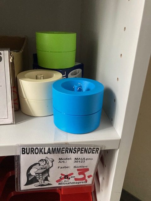 Schnäppchenmarkt EINZELSTÜCKE 2.WAHL oder GEBRAUCHT STAND: 23.01.2026BESUCHERSTUHL GEBRAUCHT € 15,-ROLLCONTAINER GEBRAUCHT € 60,-Schiebetürenschrank B140 H118 € 390,-FREISCHWINGER 2.WAHL € 50,-Stahlschrank 120x45x75cm € 240Besprechungstisch 120x80x75cm € 70,-BESUCHERSTUHL RESTPOSTEN € 80,- FREISCHWINGER GEBRAUCHT € 20,-KLAPPTISCH 160×80 GEBRAUCHT € 60,-TISCH 80CM Eiche decor 2.WAHL € 80,-2 STAPELSTÜHLE KUNSTLEDER ROT pro Stück € 30,- LOUNGETISCH B33/62T60H56cm GEBRAUCHT € 70,-Freischwinger Gebraucht € 50,-Feischwinger Gebraucht € 50,-Sitz-Stehtisch 120x60x72-120 € 350,-BEISTELLSTISCH B80xT80xH75cm € 60,-Stahl-Aktenschrank B92x42x192cm Einzelstück € 300,-Besprechungstisch B160xT80xH72cm Lichtgrau 2. Wahl € 80,- 4 Besuchersessel Stoff blau drehbar pro Stück € 150,-Besuchersessel Fabr. VIASIT GEBRAUCHT € 40,-SCHREIBTISCH Buche decor 180x80x72cm 2. Wahl € 200,-SCHREIBTISCH Bogenform 180x90x72cm Kirsche/Chrom € 150,- 8 Feischwinger Fabr. VIASIT gebraucht pro Stuhl € 40,- 4 Besuchersessel Stoff grau drehbar pro Stück € 120,-WINKELTISCH Ahorn decor 180×120/80x72cm 2. Wahl € 190,-Stiftehalter Rundbox gelb oder orange € 5,- Büro- klammernspender grün, dkl.rot € 3,-LED-TISCHLEUCHTE mit Akku EINZELSTÜCK € 19,-